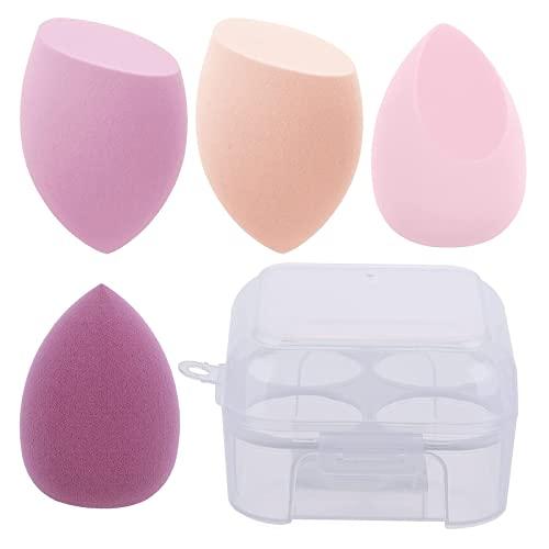 YIBOOOM メイクスポンジ パフ 4個入り ケース付き 多機能メイク用スポンジパフ 柔らかいメイク道具 乾湿兼用 水しずく型 斜めカット 旅
