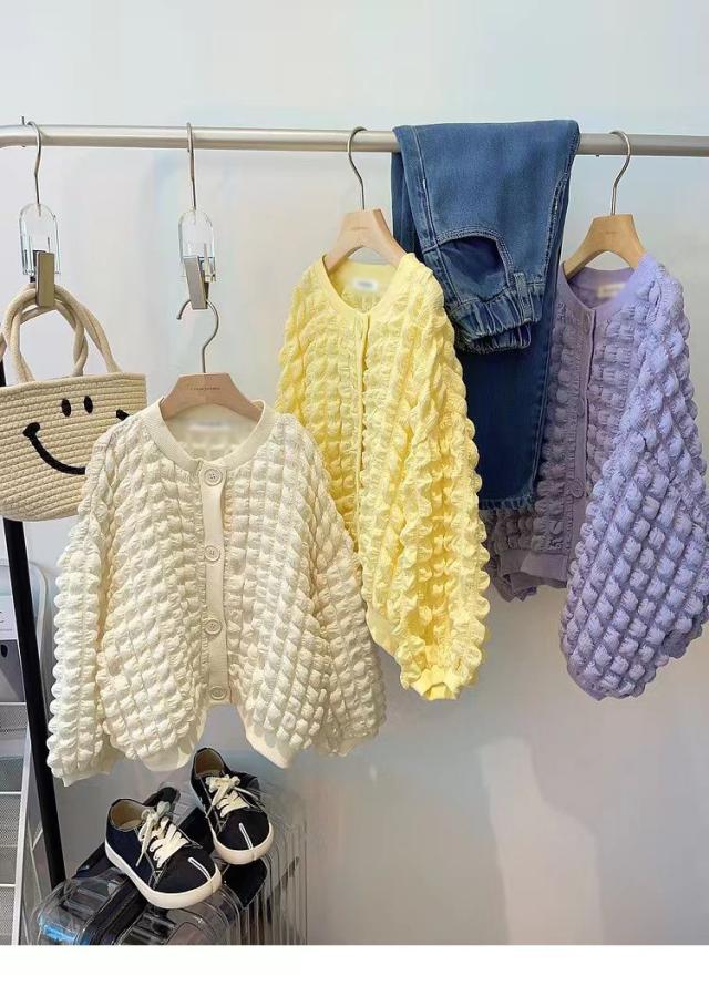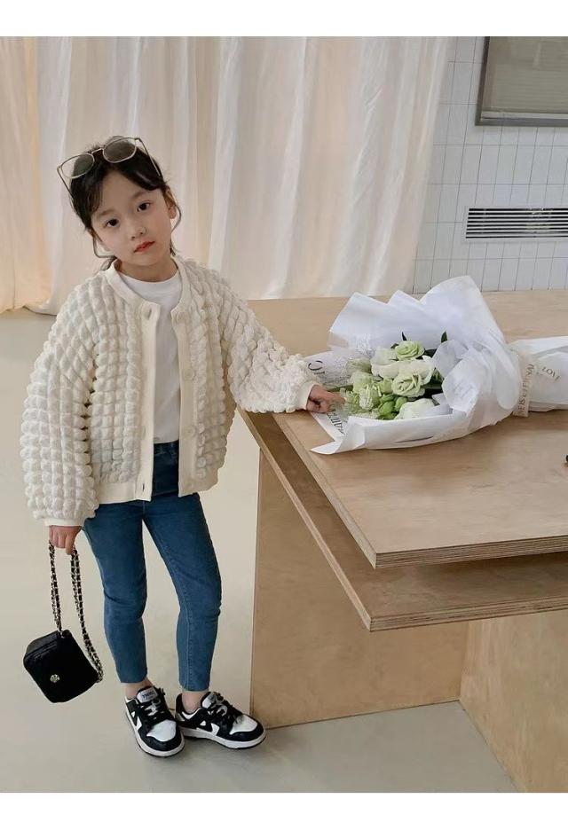 ジャケット 子供服 ポップコーン 長袖 女の子 ガールズ 前開き アウター 可愛い ライトアウター ポコポコ カジュアル 春秋 通学 通園 無地 お洒落