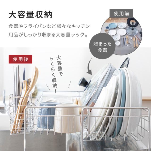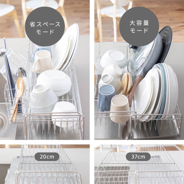 - 容量変えられて便利。食洗機で洗えない大きな鍋やフライパンなどもしっかり置けるようになりました。