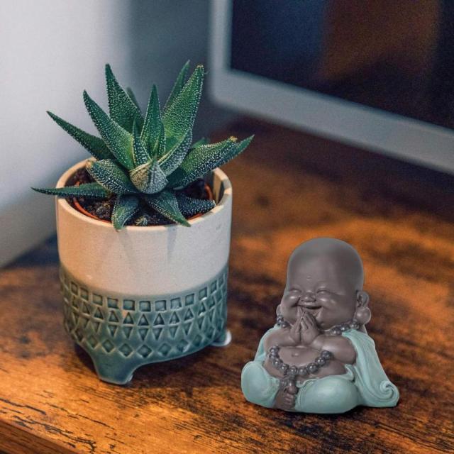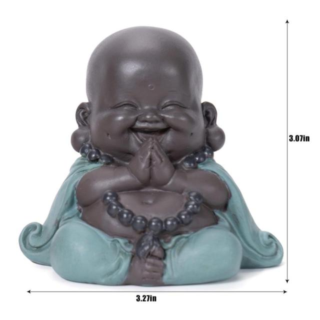 ブッダ像、笑っているブッダの微笑む小さなブッダ セラミックブッダ像 小さな修道士の置物 かわいいベビーブッダ 家庭 オフィス 車 装飾 ギフト 工芸