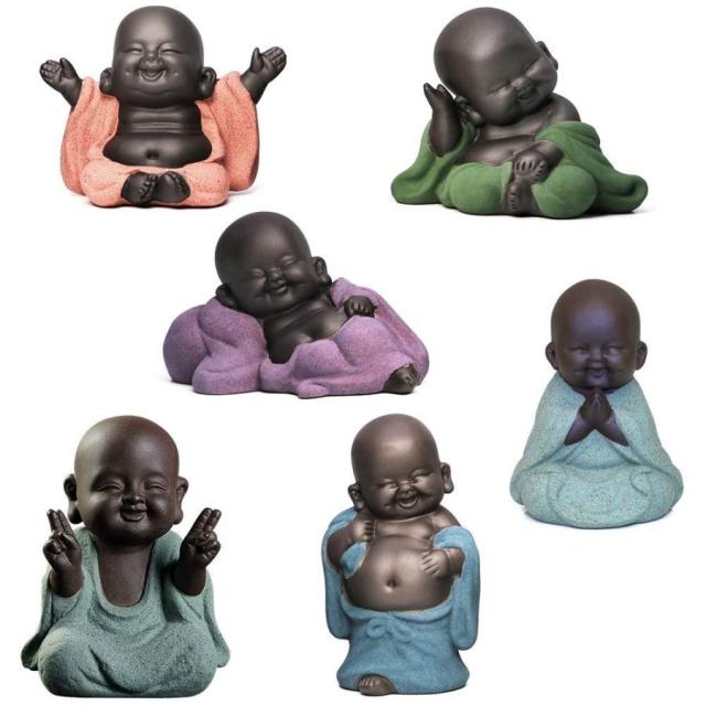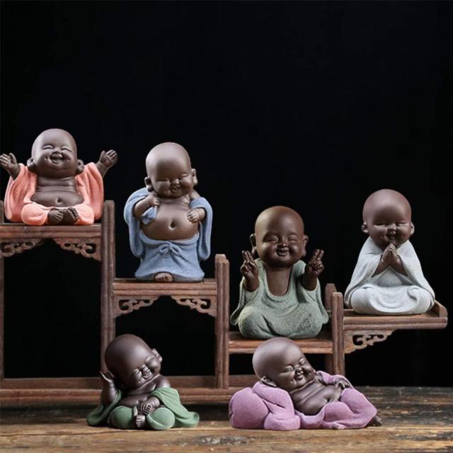 かわいい 6個 笑顔 仏陀 コレクション 修道士 置物 ギフト 喜ば プレゼント 装飾 飾り 茶道具 茶道 祈り幸せ 家庭用 事務室