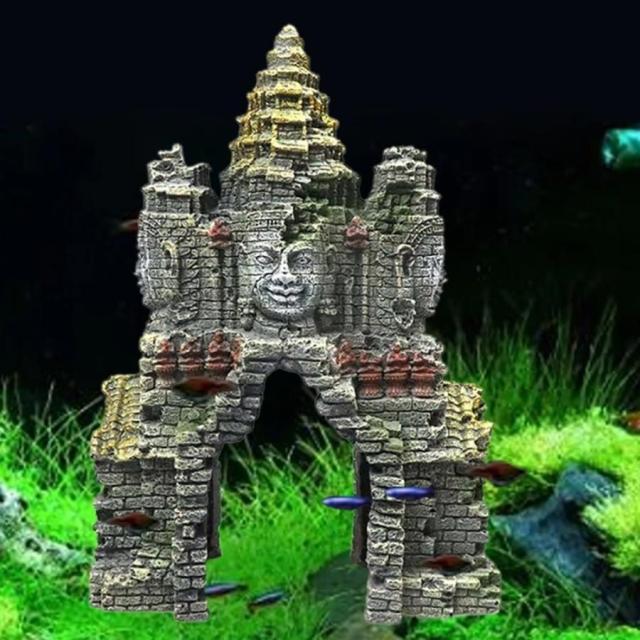 アクアリウム アステカ 石像風 水族館の造形 遺跡 オブジェ 水槽 置物 インテリア 熱帯魚 魚 熱帯雨林 淡水魚 ネオンテトラ グッピー エンゼルフィッシュ