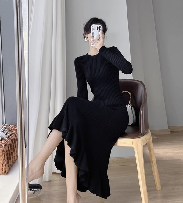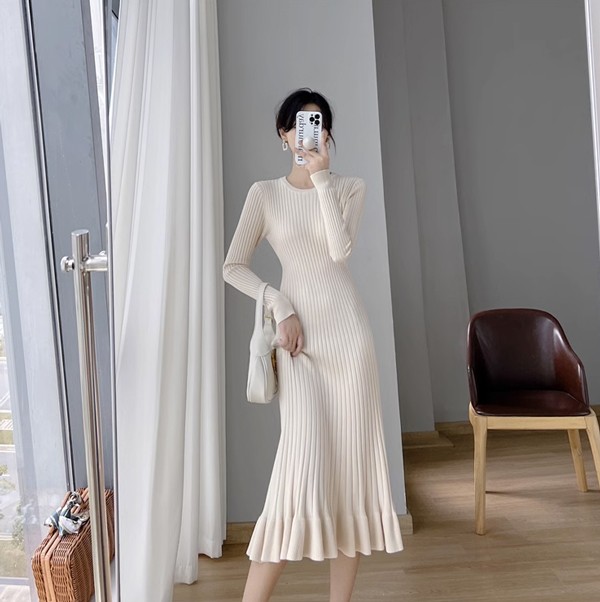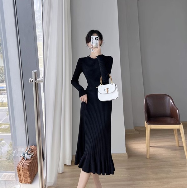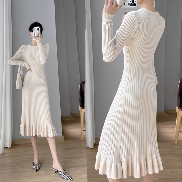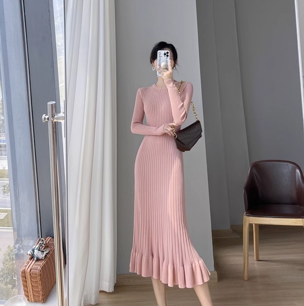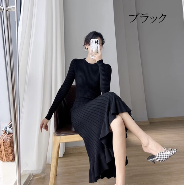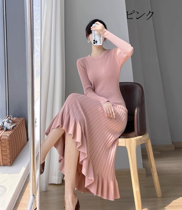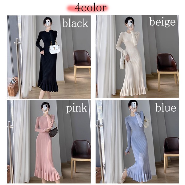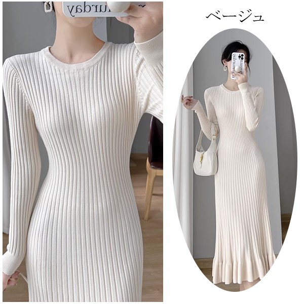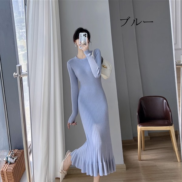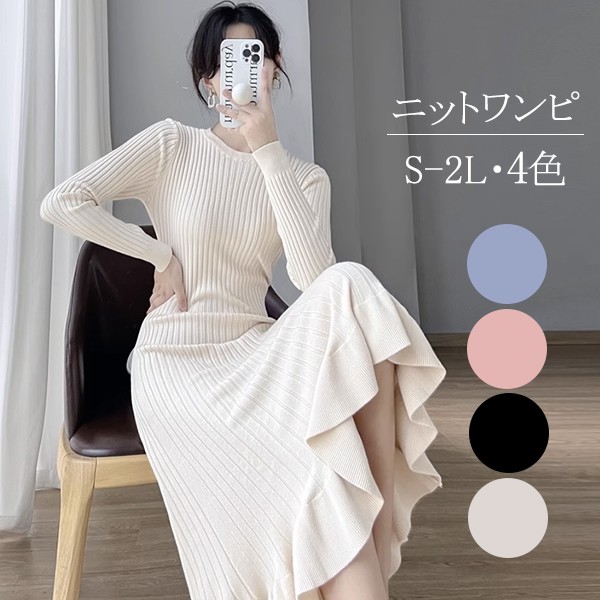 タイトワンピース ニット ワンピース リブニット タイト レディース ワンピ セーター 可愛い 長袖 大きいサイズ ひざ丈 パーティドレス お嬢様 セクシー 重ね着 着回し 膝下 きれいめ おしゃれ あったか 韓国 ブラック ベージュ ピンク ブルーS M L 2L dd024l9l9zr
