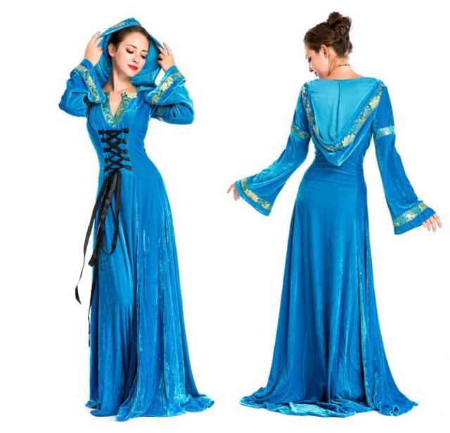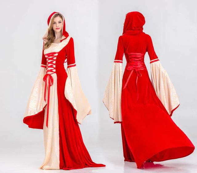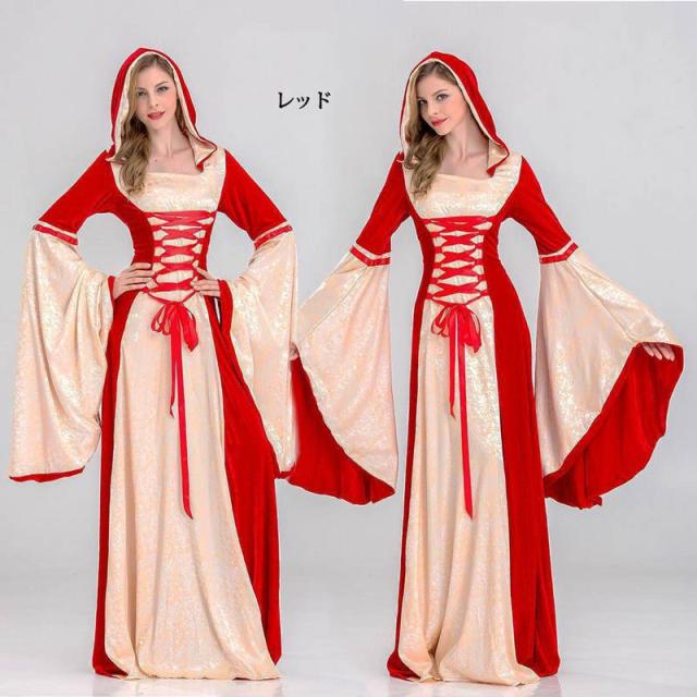レディース ドレス ハロウィー ワンピース ロング丈 中世 フード付きワンピース 貴族服 宮廷装 ヨーロッパ風 西洋 コスチューム ベルベット コスプレ衣装 発表会 演奏会用ドレス ピアノ 合唱 披露宴 舞台衣装 仮装 ハロウィーン 大人 be295c0c0zr