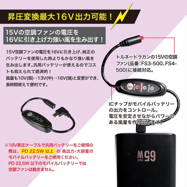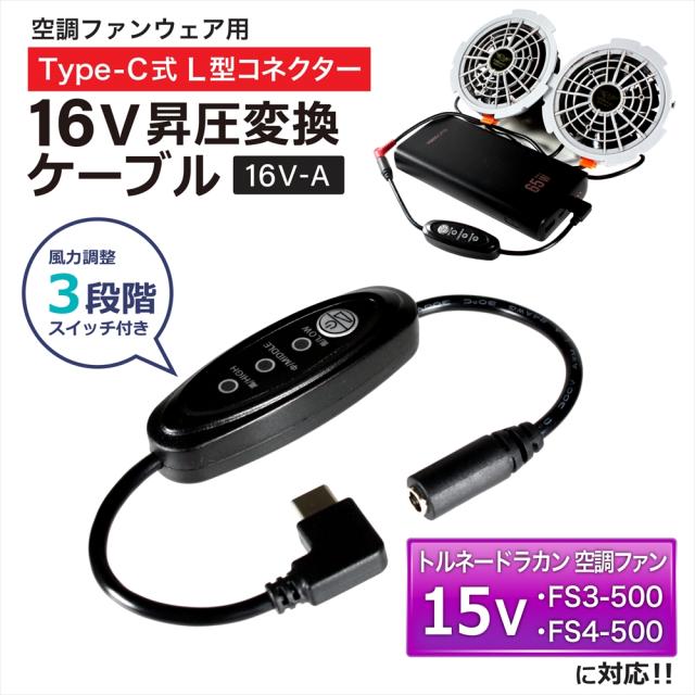 16V Type-C昇圧 アダプター L型 15V トルネードラカン対応 Type-C PD対応 モバイルバッテリー ファン付き作業服 FS4-500 FS3-500 2022年 2021年 変換 昇圧ケーブル ケーブル ハイパワー 電圧不足 USB-C端子 タイプC 昇圧コンバータ スイッチ付き 【16V-A】