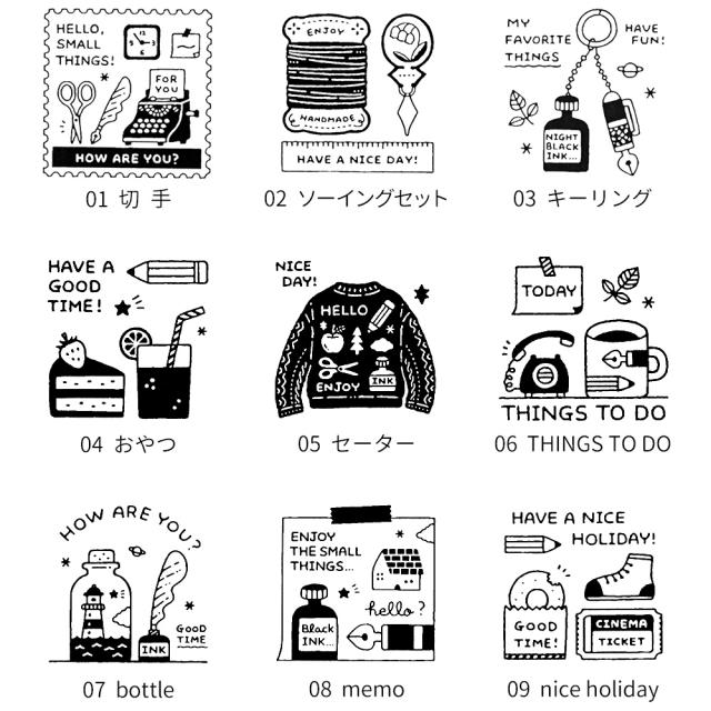 | 特 徴 | 消しゴムはんこ作家・イラストレーター[eric]デザイン。 スタンプ台不要のポンポンおせるインク付きスタンプ。 スケジュール帳やノートを可愛らしくデコレーション、手作りカード作成や付箋にもオススメです。 デザインの種類は3種類。 ※捺印カラーは黒色です。 細かい柄や文字も綺麗に捺せます。 ※押し圧などにより押し型見本と多少異なる場合がございます。 |