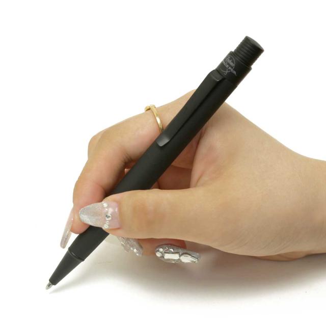 「無重力」を意味するゼログラビティボールペン。無反射ラバーコーティングが施された太めの軸は滑りにくく、グリップ部分は緩やかな三角形で安定した握り心地を実現します。粘着性の強い特殊なインクが使用されており密封することでドライアップ(乾燥)がなく100年以上の保管も可能です。