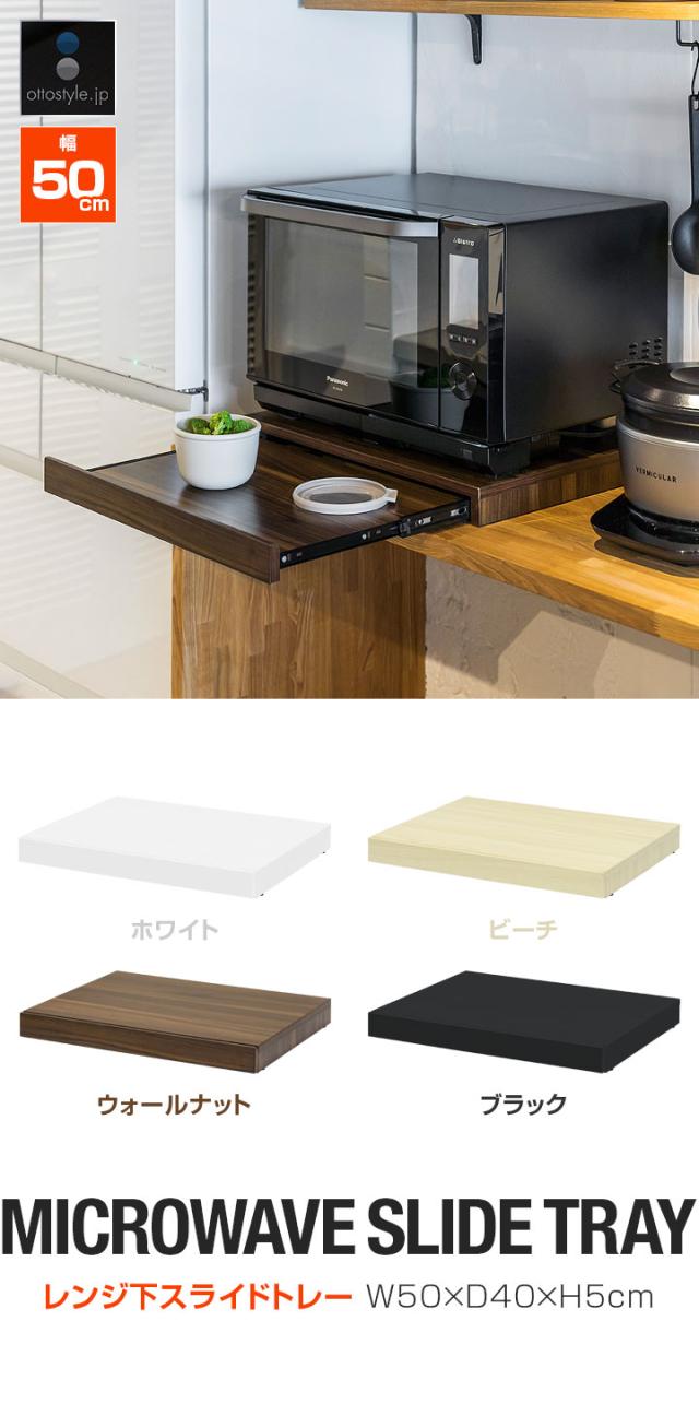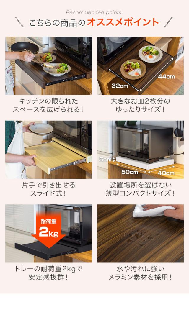 レンジ 下 スライドテーブル レンジ下 スライドトレー 幅50cm×奥行40cm 引出しトレー レンジ置き レンジラック キッチン 引き出し トレイ 収納 スライド棚 家電台 作業台 棚 卓上 省スペース コンパクト オーブンレンジ 大型レンジ対応 送料無料