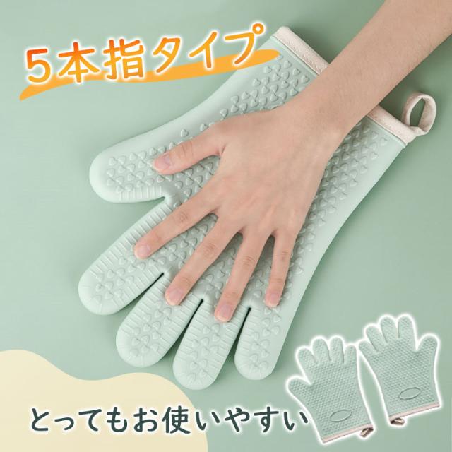 オーブングローブ 耐熱グローブ オーブン 手袋 5本指 滑り止め 鍋つかみ キッチンミトン 耐熱オーブンミトン シリコンミトン 耐