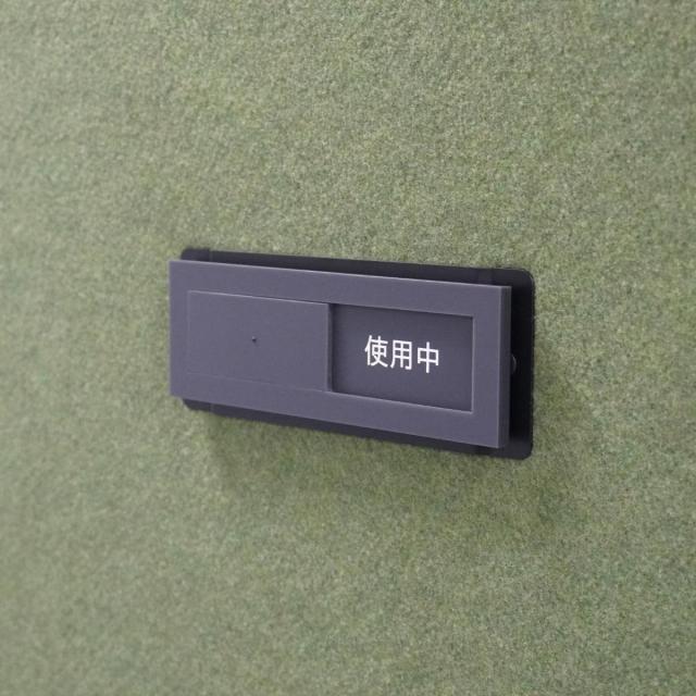 ブースの使用状況が一目でわかるプレート付きです。表示部分を左右にスライドさせると、空室/使用中を切り替えることができます。
