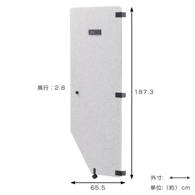 | 材質 | 吸音ボード:PP、ポリエステル 不織布:PET サインプレート:アクリル樹脂 取っ手:アルミニウム、スチール 金具、ネジ、六角レンチ、スパナ:スチール Eリング:ステンレス鋼 キャスター:ナイロン、スチール |