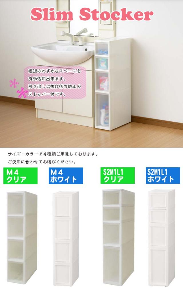 隙間収納 リセスリムストッカー すき間 洗面所 収納 引出し ホワイト クリア コロ付き キッチン 18cm すき間収納 20cm ストッカー キッチンラック キッチンストッカー ラック サニタリー 送料無料