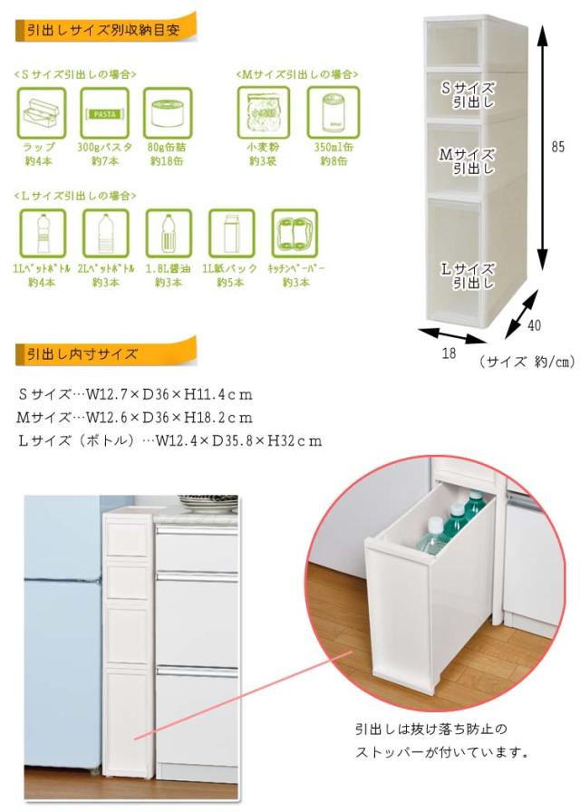 洗面台等の横スペースに置ける幅18cmのスリムストッカーで20cmのすき間に入ります。