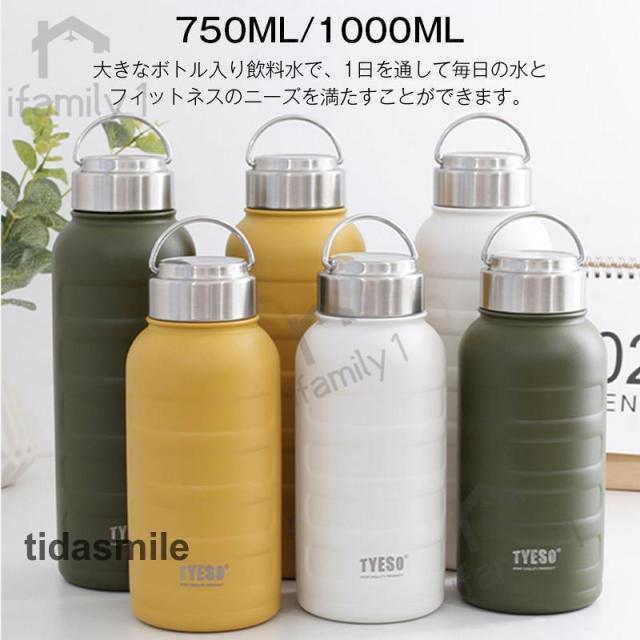 水筒 1リットル 直飲み ステンレスボトル ウォーターボトル 炭酸対応 おしゃれ 真空断熱 保温 保冷 洗いやすい 漏れ防止 熱湯 広口 750ml 通勤 通学