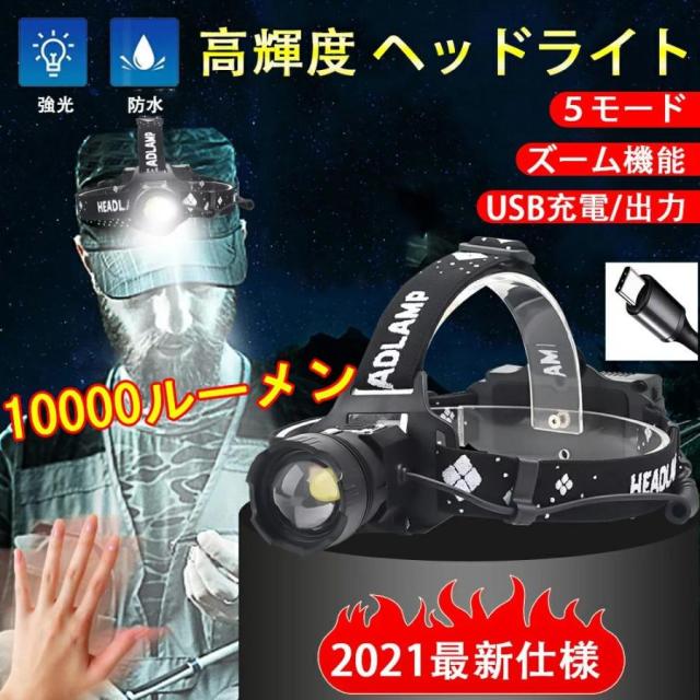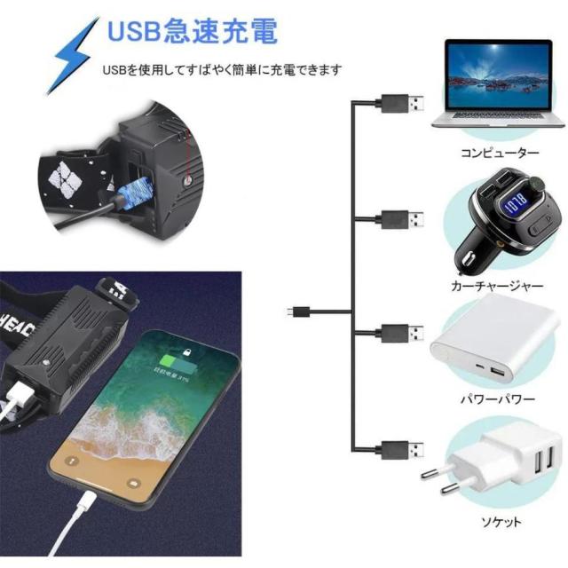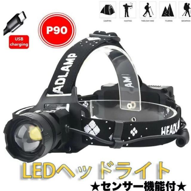 【営業日当日発送】LEDヘッドライト 超強ルーメン ヘッドライト 最高輝度 USB急速充電 センサー機能 登山 夜釣り アウトドア作業 SOS IPX4防水機能 照射方向90度まで可能
