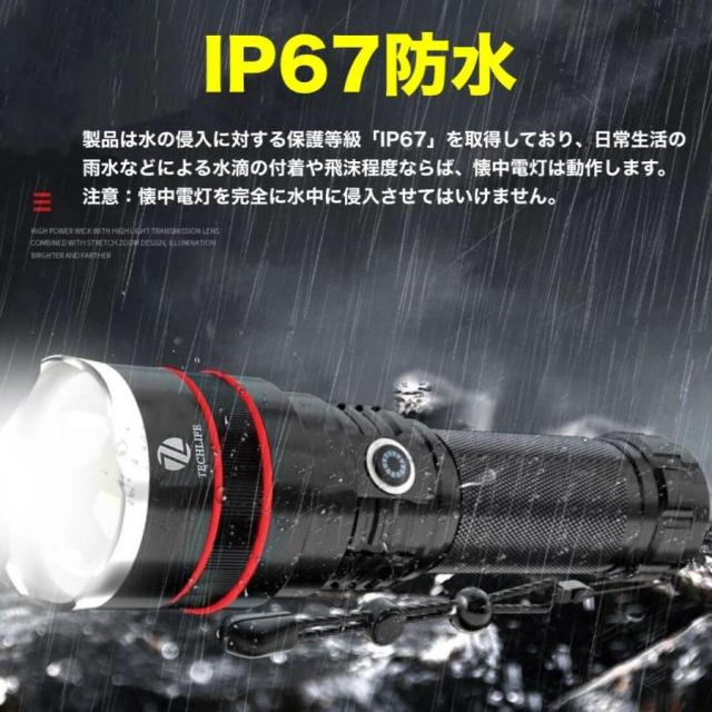 LED懐中電灯 超強力 超高輝度 ハンディライトUSB充電式 18650電池付き ズーム機能7モード SOS点滅 軍用 停電 防災 T6xCREE&cob IPX67防水 登山 夜釣り キャンプ アウトドア フラッシュライト 停電 防災対策