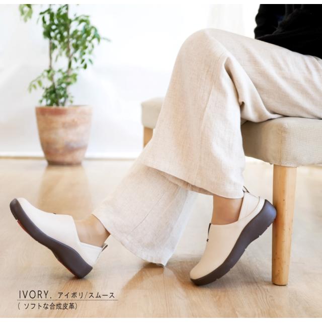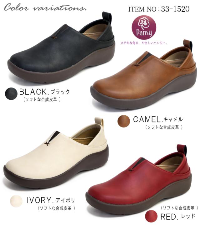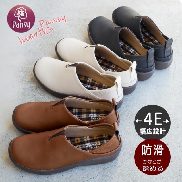 パンジー Pansy スリッポンシューズ 靴 レディース かかとが踏める 2way 幅広 4E 外反母趾 軽量 抗菌 防滑 ゴム オブリークトゥ フラット 履きやすい 歩きやすい