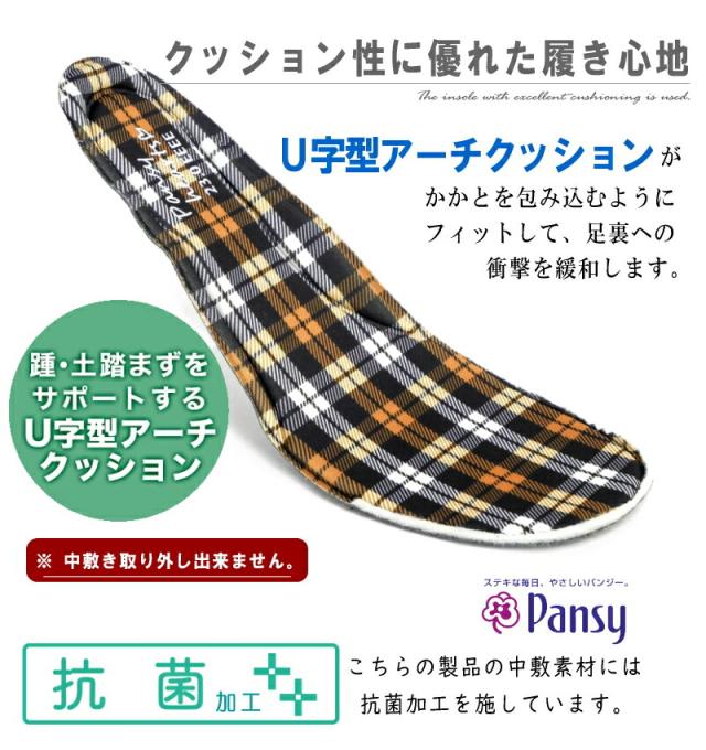中敷きにはU字アーチクッションで歩行中の衝撃を緩和。見た目もチェック柄でカワイイ!