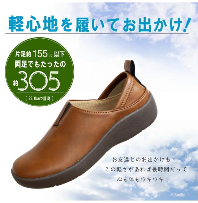 アウトソールには防滑性を備えグリップ力を強化!軽量で長時間履いても疲れにくい。
