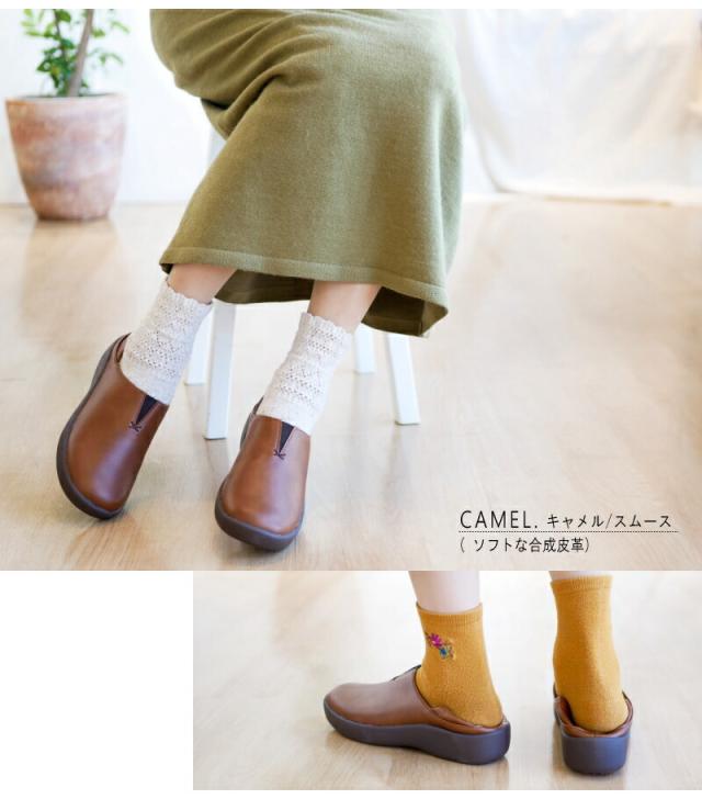 甲に施されたスリットゴムが脱ぎ履きしやすくシンプルでいて機能的なデザイン性。