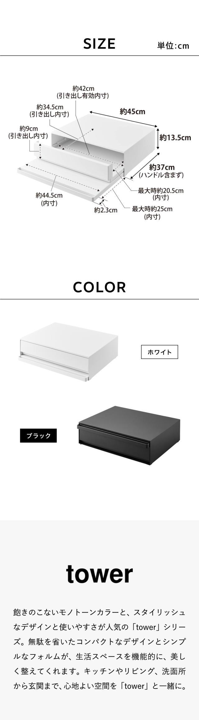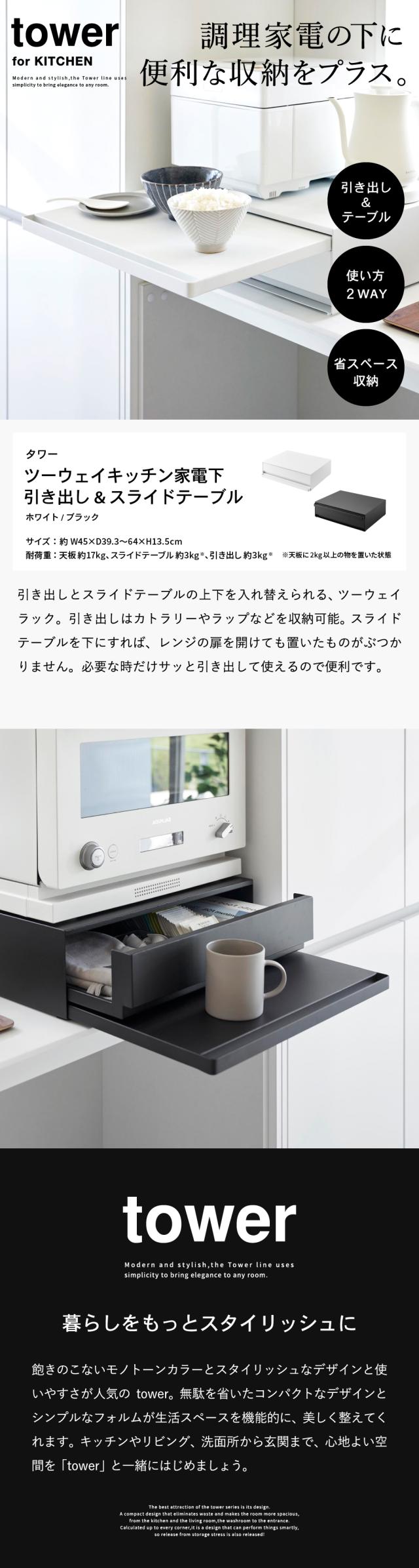 tower 山崎実業 ツーウェイ キッチン家電下引き出し&スライドテーブル タワー キッチン 送料無料 2007 2008 ホワイト ブラック 幅45cm 2段 スライド トレー 引き出し 調理台 家電ラック タワーシリーズ