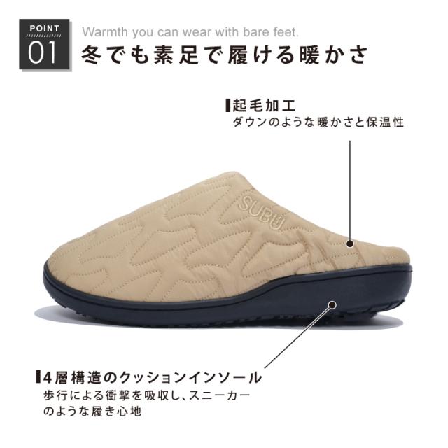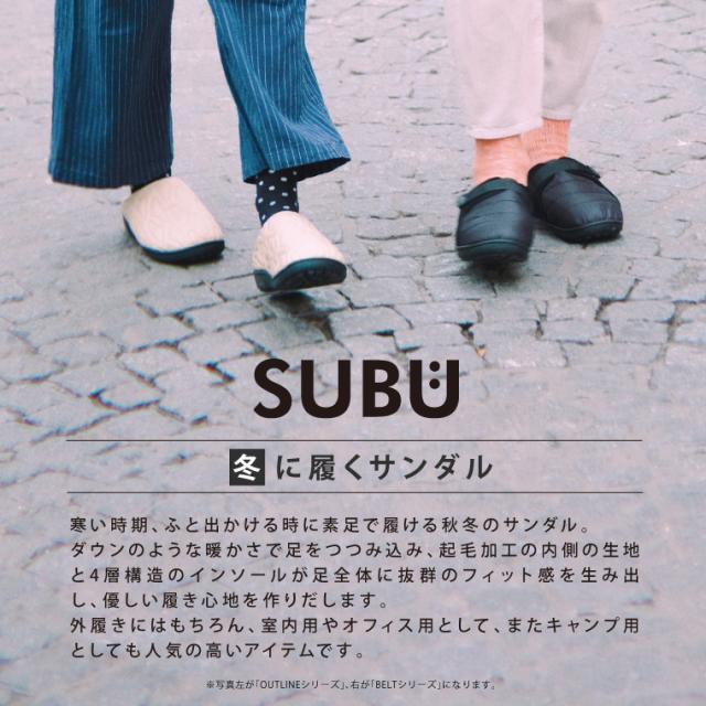 SUBU Outline スブ アウトライン ステッチ 冬用サンダル スリッポン スブ柄 おしゃれ キャンプ アウトドア ダウン ボア ファー 暖かい 防寒 サンダル ボアサンダル レディース メンズ キッズ スリッパ ブラック カーキ ベージュ 正規品 2025 オフィス agesugi_sfa