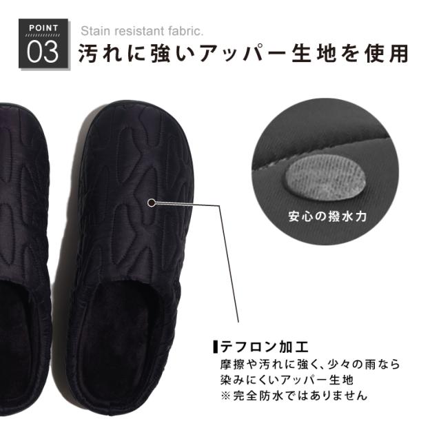 ダウンのような暖かさと、起毛加工の内側の生地が足全体にフィットし、しっかり防寒。