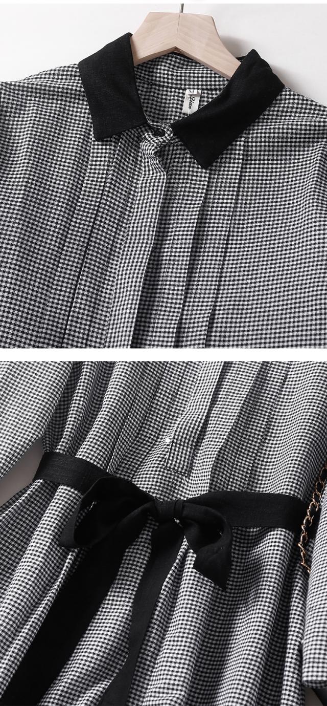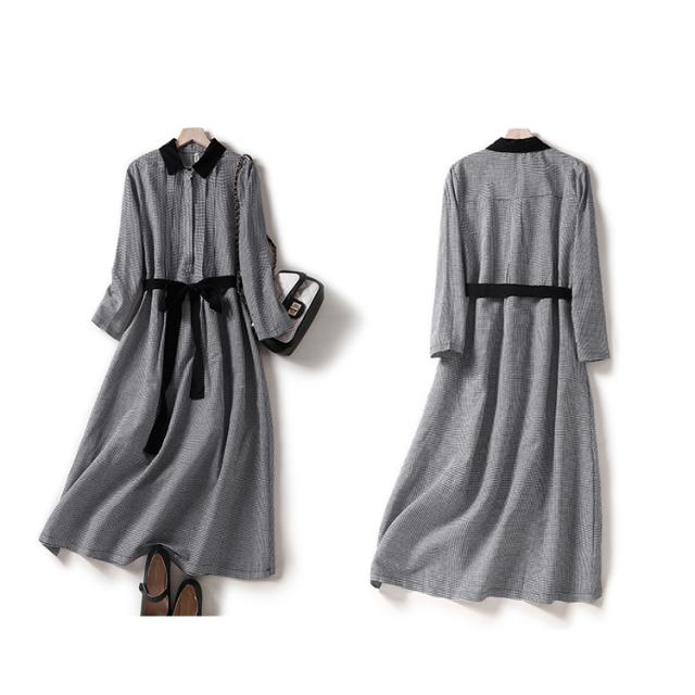 シャツワンピース 秋冬 レディース ドロングワンピース 長袖 ストレッチ リボン 120cm シャツワンピ