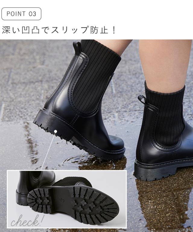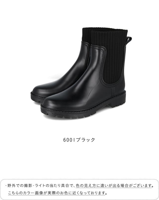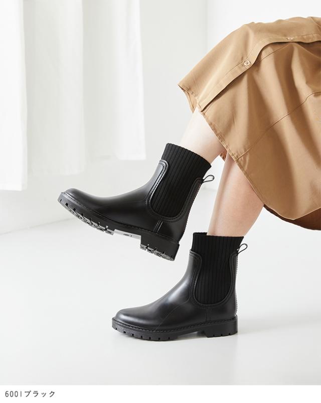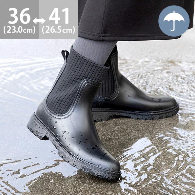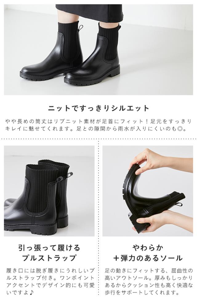 レインシューズ 長靴 レディース レインブーツ ブーツ 3cmヒール トラックソール 防水 撥水 ニットブーツ サイドニット 黒 送料無料