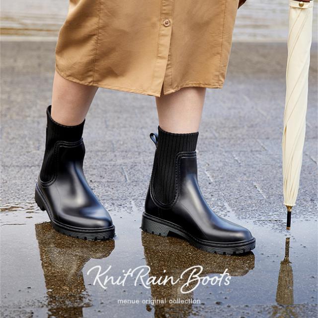 レインブーツ ブーツ レインシューズ レイン 雨靴 長靴 フラットブーツ ぺたんこブーツ レディース ラウンドトゥ ラウンド ニット ニットブーツ ソックスブーツ ニットソックスブーツ サイドニット リブニット 靴下ブーツ フラットヒール フラット フラットソール ぺたんこ トラックソール ごつめ 重ため 完全防水 防水 ウォータープルーフ 撥水 やわらかい 柔らかい 屈曲性 すべりにくい 痛くない 歩きやすい 疲れない 疲れにくい 大きいサイズ 小さいサイズ アウトドア キャンプ 山 川 雨 雨の日 梅雨 梅雨対策 レジャー フェス デート おでかけ お出かけ カフェ ショッピング 買い物 お迎え 公園 送り迎え 子育て 子連れ 屋外 外履き デイリー 日常 普段使い 日常使い 普通履き 3cmヒール 3センチヒール ミドルヒール 黒 ブラック 23.0cm 23.5cm 24.0cm 24.5cm 25.0cm 25.5cm 26cm 26.5cm 春 夏 秋 冬 PVC menue メヌエ outletshoes アウトレットシューズ welleg ウェレッグ