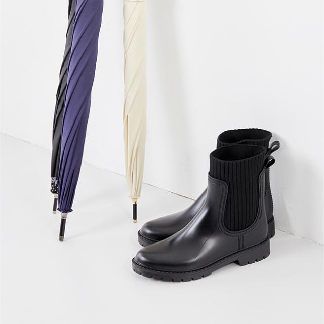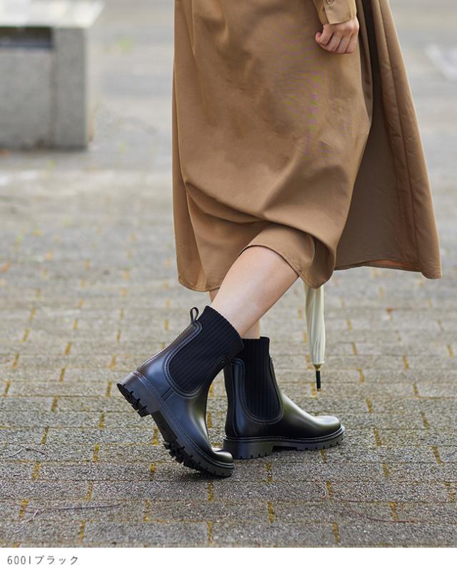 トレンドデザインをレインブーツにも!トラックソール リブニット切り替え レインブーツ