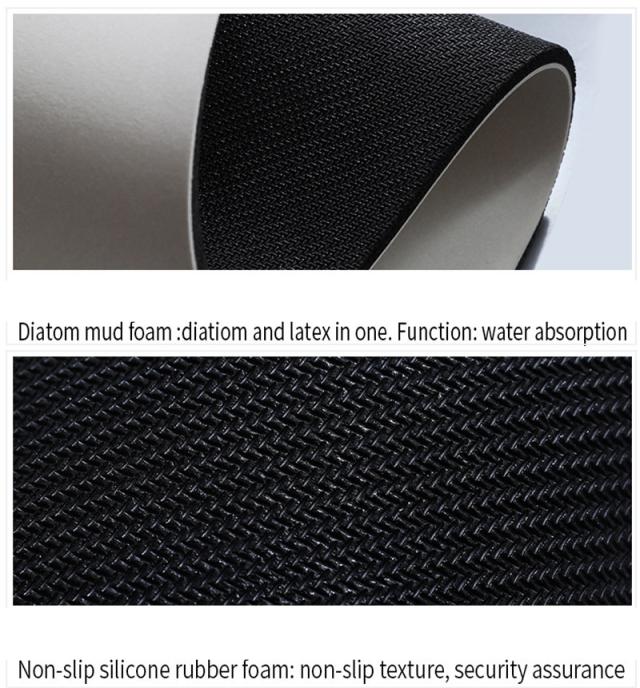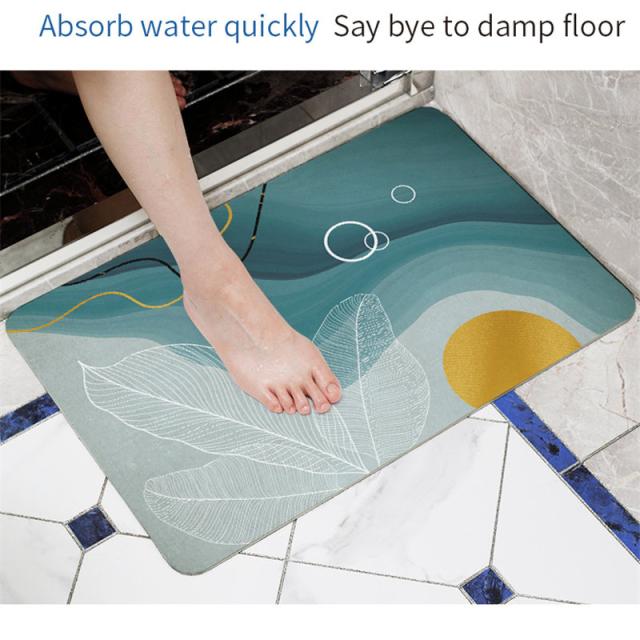珪藻土の優れた吸水性により風呂上りの濡れた足の水分をすばやく吸い取り、