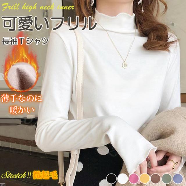 【1点850円!2点購入&クーポンで】カットソー Tシャツ 秋冬 微起毛 裏起毛 プチハイネック レディース 冬新作 送料無料 トップス フリル あったか 保温 暖かい 長袖 ハイネック インナー ストレッチ 柔らか あったか ブラウス ホワイトデー 卒業式