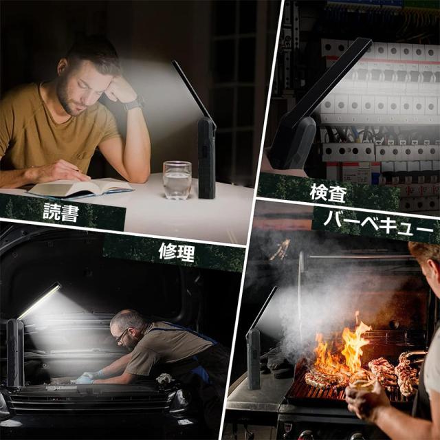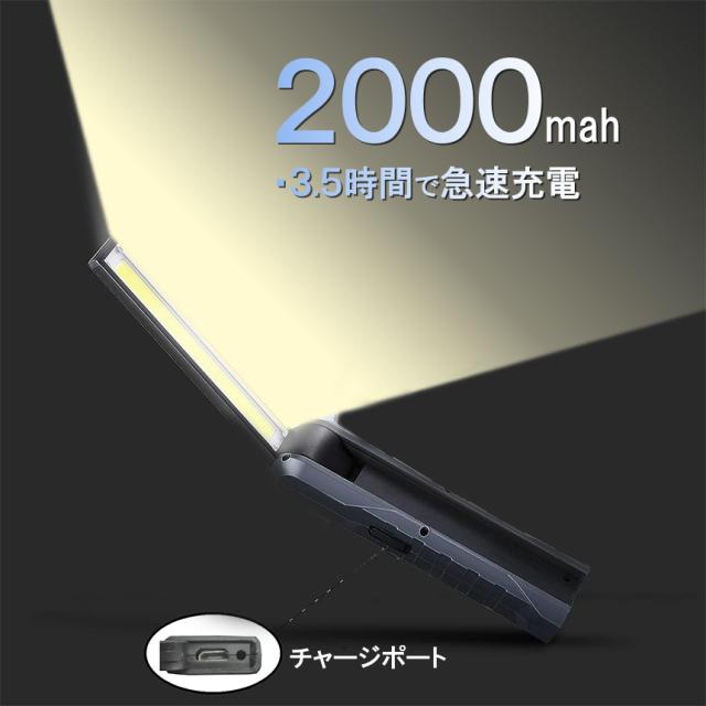 懐中電灯 充電式作業灯 LEDワークライト USB充電式 LED検査ライト ハンディライト 折り畳み式 マグネット機能搭載 COB LED作業灯 電池残量表示 フック付き 夜間作業 自動車修理 防災 キャンプ 読書