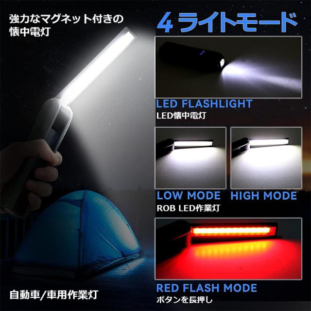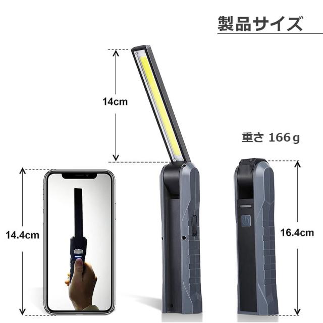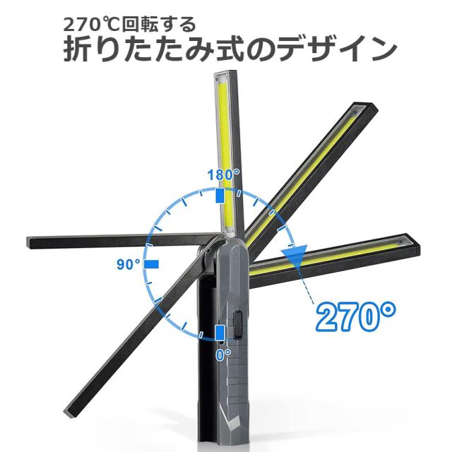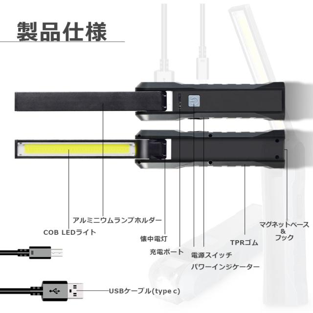 懐中電灯 充電式作業灯 LEDワークライト 2個セット USB充電式 LED検査ライト ハンディライト 折り畳み式 マグネット機能搭載 COB LED作業灯 電池残量表示 フック付き 夜間作業 自動車修理 防災 キャンプ 読書