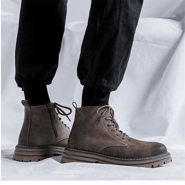 ポイント超超祭 ブーツ メンズ レディース ショート 厚底ヒール レースアップ レザー 合成皮革 ワークブーツ ショートブーツ 革靴 アウトドア 秋冬