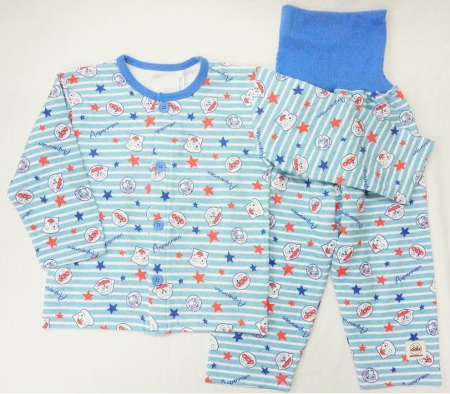 【メール便利用!送料込み】BANDAIそれいけ!アンパンマンあったか素材ニットキルトボーダー総柄長袖パジャマ前開きタイプEA2540ブルー