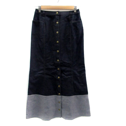 【中古】クレ CLE デニムスカート フレアスカート ボタンダウンスカート ロング丈 マキシ 切替 紺 グレー レディース