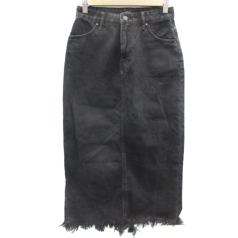 【中古】アズールバイマウジー デニムスカート タイトスカート ロング丈 フリンジ バックスリット S 黒 レディース