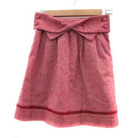 【中古】プロポーション ボディドレッシング 台形スカート ギャザースカート リボン ウール 1 赤 ■MO レディース