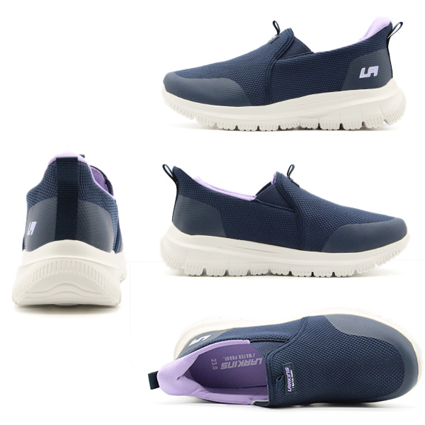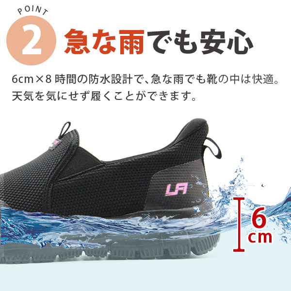 スリッポン レディース 靴 スニーカー 黒 ブラック 防水 雨 レイン シューズ パープル 軽量 軽い 厚底 クッション ハンズフリー 妊婦 買い物 主婦 子育て サッと履ける 履きやすい 介護 疲れない 履きやすい 楽 シンプル LARKINS ラーキンス L-304 ギフト