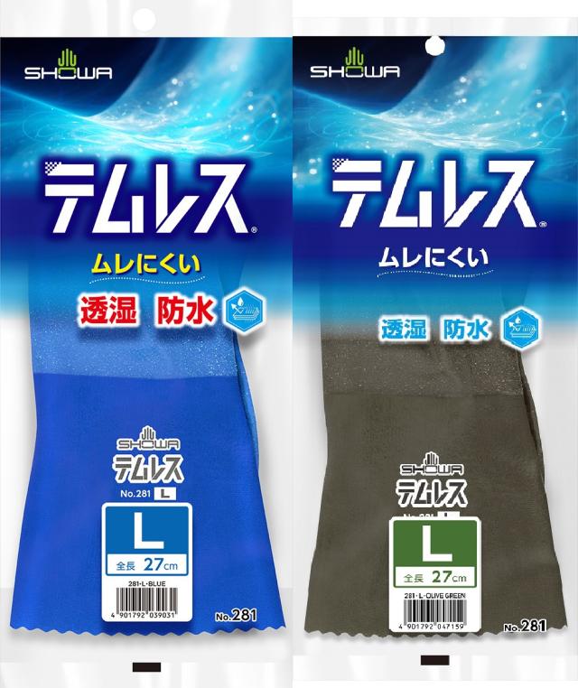 テムレス 作業用手袋 透湿性 防水性 ショーワ ブルー オリーブグリーン SHOWA 281 S、M、L、LL 1双 防水手袋