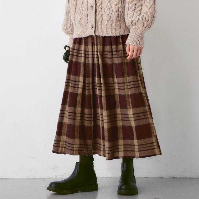 ふんわりタックチェックミモレスカート