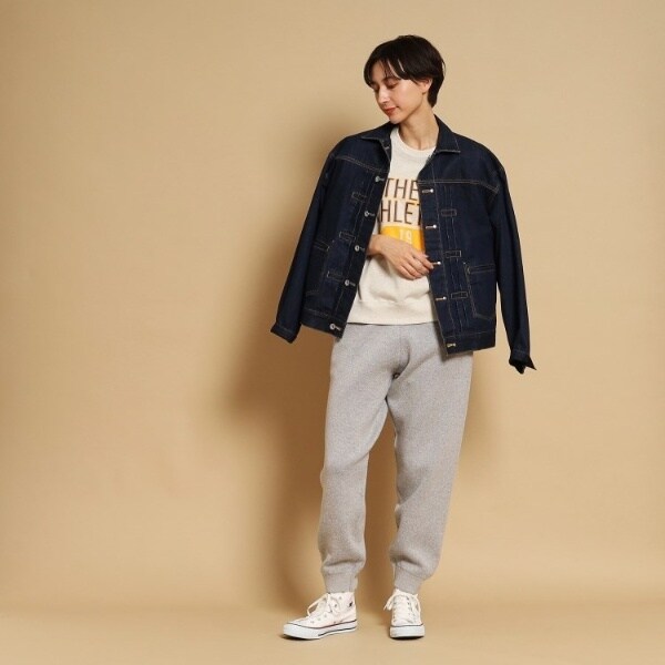 同素材のトップスとのセットアップがおすすめです。