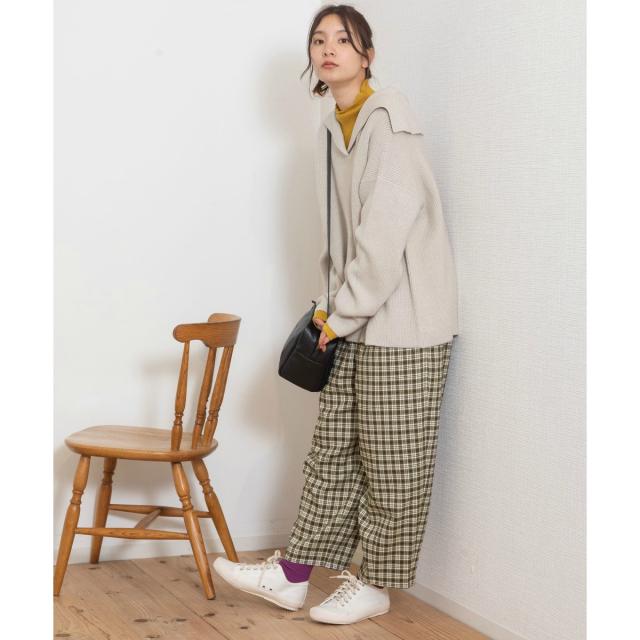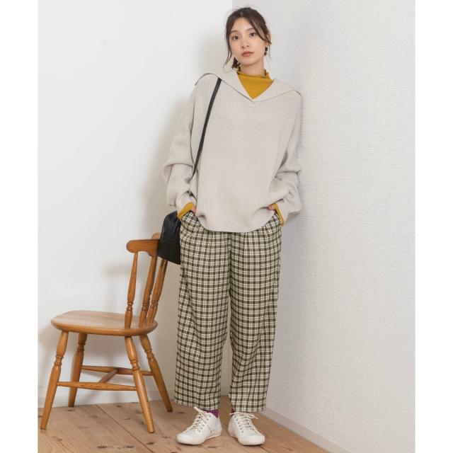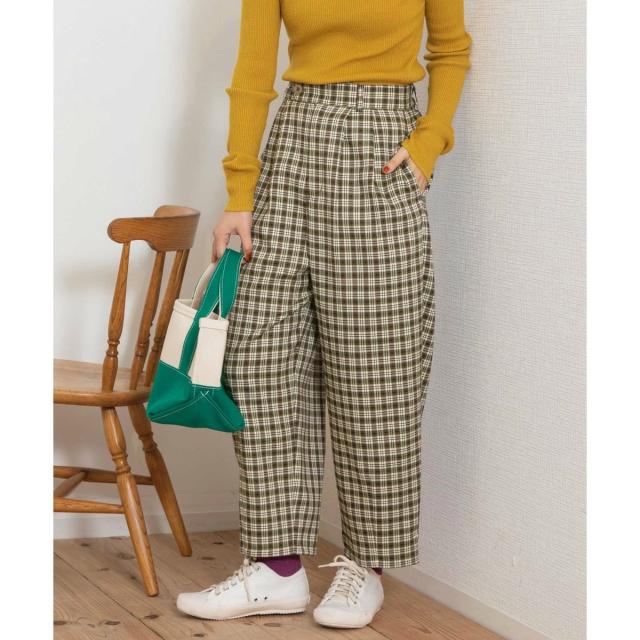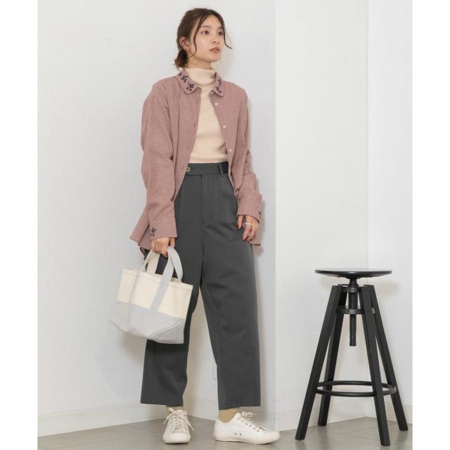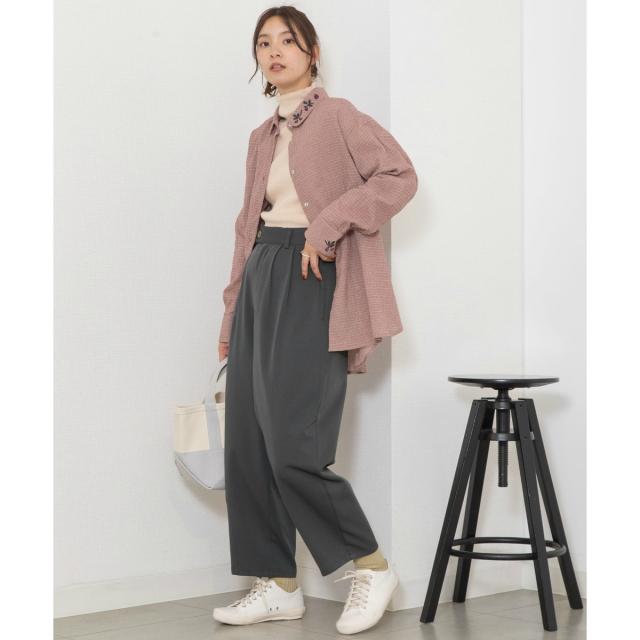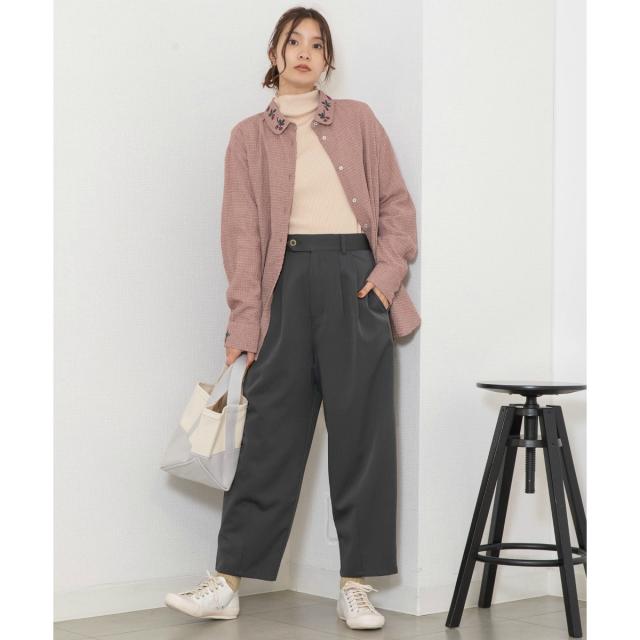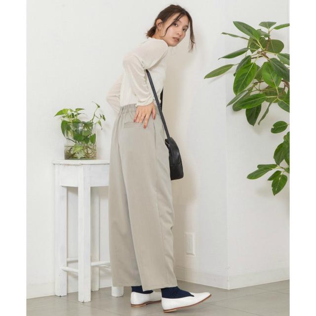・左右のタックでヒップ周りにゆとりを持たせつつ、裾に向かってすっきりとさせたシルエットです。