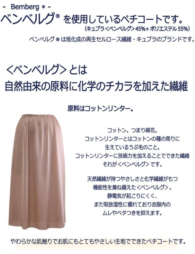 静電気防止 ベンベルグ使用 ロングペチコート 65丈/70丈/75丈/80丈/85丈【キュプラ ペチコート ロング ワンピース 帯電防止 浴衣 着物 和装 敏感肌】