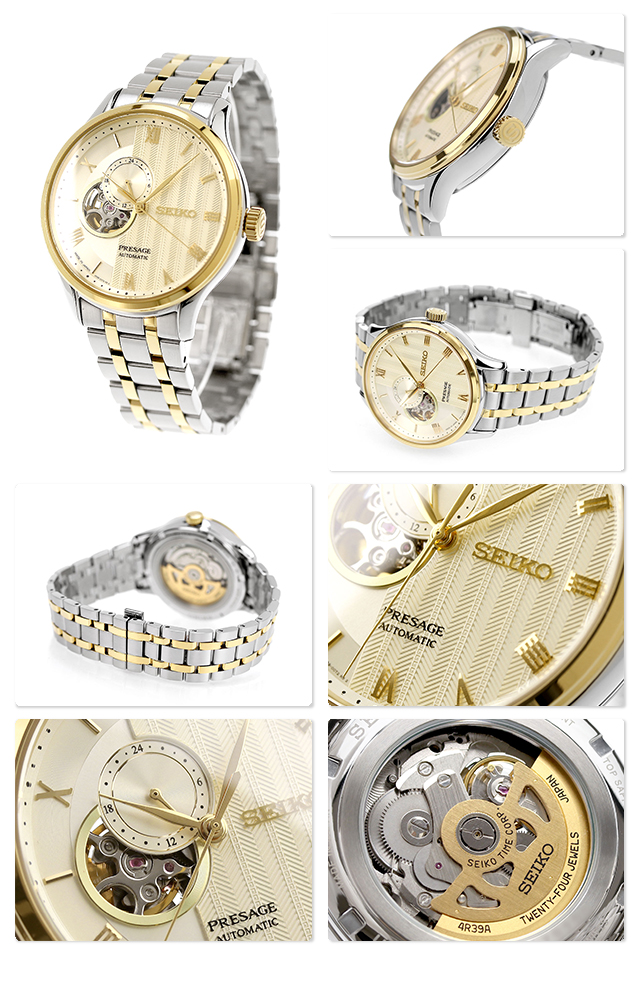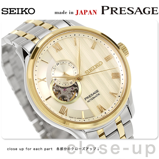 正規品 7年保証キャンペーン 送料無料 セイコー プレザージュ 日本製 メンズ 腕時計 SARY238 SEIKO PRESAGE Japanese Garden アナログ ゴールド シルバー ◆PRESAGE(プレザージュ)は、日常生活での実用性を高める機能を標準装備したメイド・イン・ジャパンの機械式ウォッチブランドです。 日本庭園がデザインコンセプトのJapanese Gardenシリーズのオープンハート仕様の新モデル。日本庭園に着想を得た世界観と、日本の美意識に基づいたデザイン性は高く評価されています。売れ筋となっているモデルに採用している「オープンハート仕様」「ローマダイヤルデザイン」「砂紋パターン」のダイヤルを、日本庭園を象徴するカラーリングにまとめあげました。シンプルなデザインはシーンを問わずお使いいただけ、誕生日や記念日などのプレゼントにもおすすめです。 発売日:2023年10月発売