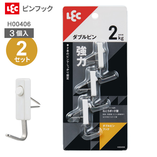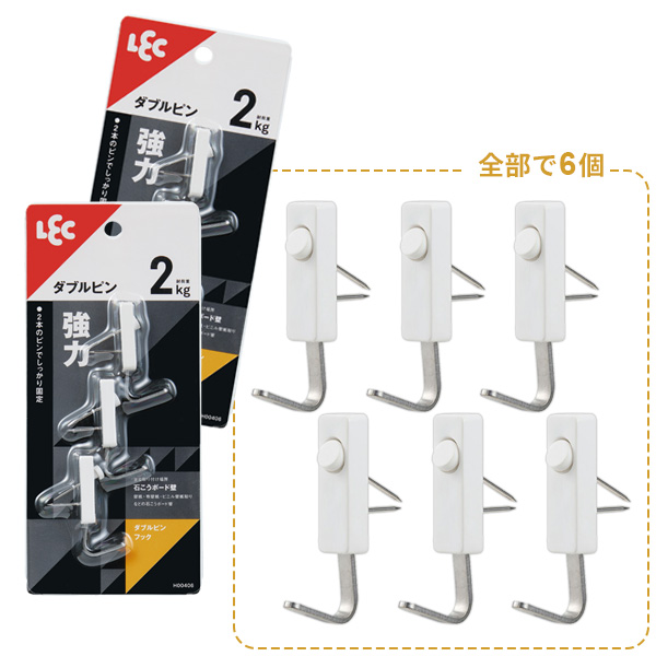 【メール便 ポスト投函 送料無料】ダブルピンフック(3入り) H00406 ×2セット | フック ピンフック 石膏ボード 穴が目立たない 吊り下げ ぶら下げ 掛ける 壁 小物掛け シンプル ネジがいらない