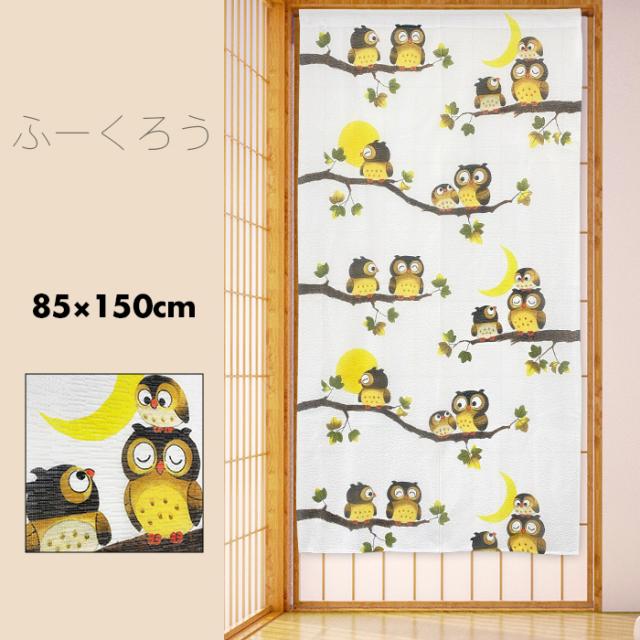のれん 暖簾 おしゃれ カーテン 間仕切り 仕切りカーテン 目隠し 和風 和柄 和モダン 和風モダン 和風暖簾 日本 総柄 梟 縁起物 幸運 招福 風水 三日月 満月 月夜 ふくろう ふーくろう 85×150cm