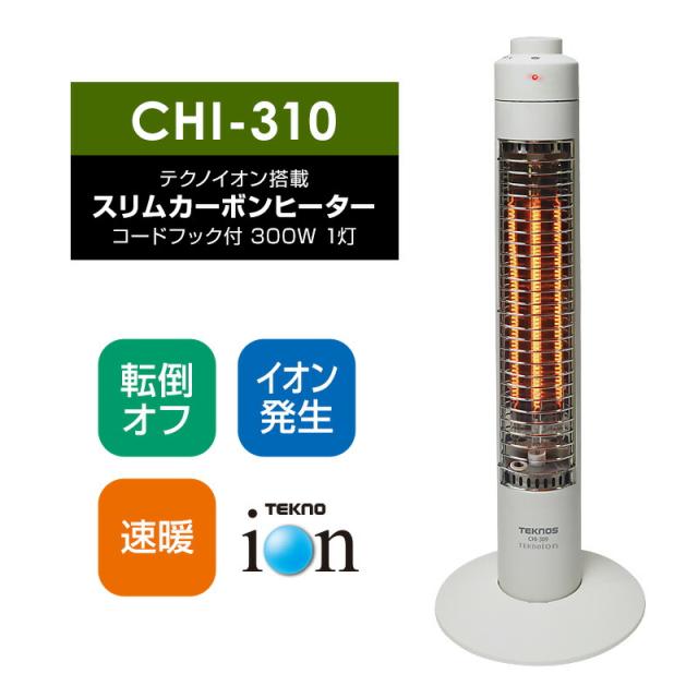 TEKNOS テクノイオン搭載 スリムカーボンヒーター CHI-310 テクノス カーボンヒーター 300W 速暖 すぐあったか 暖房 スリム 省エネ 遠赤外線 電気ストーブ トイレ 脱衣所 おひとり様 ストーブ ヒーター 暖房器具 冬 オフィス 自宅 家 会社 事務所 CHI-309 CHI309 の 後継品